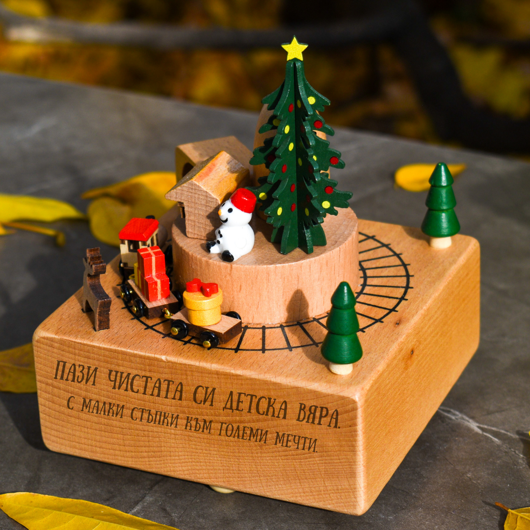 Дървена Музикална Кутия с Име – Букова, Ръчна Изработка, Персонализирана