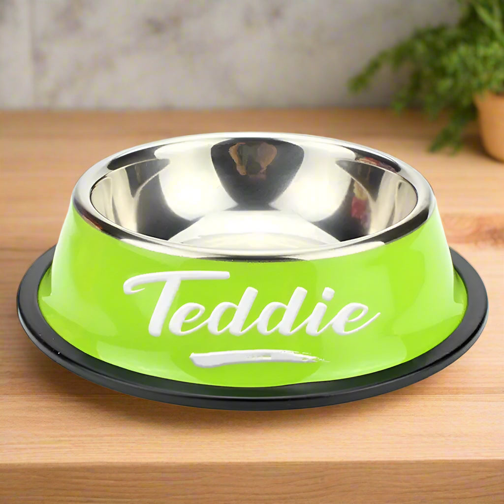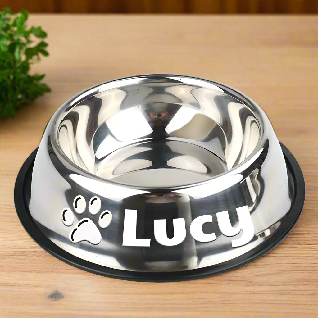 Осигури удобство и стил за твоя любимец с тази персонализирана купичка от неръждаема стомана, създадена за безопасно и спокойно хранене. Противохлъзгащата основа предотвратява разливане, а персонализацията с име я превръща в уникален и практичен подарък.