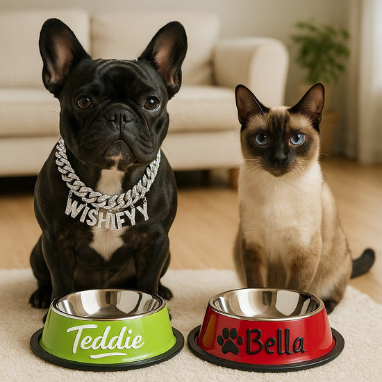 Персонализирана купичка за куче или котка – Неръждаема, с име и защита от плъзгане