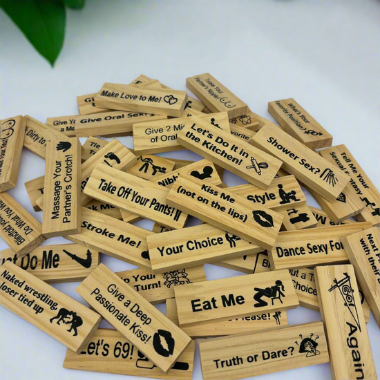 • 54 дървени блокчета с персонализирани романтични предизвикателства
