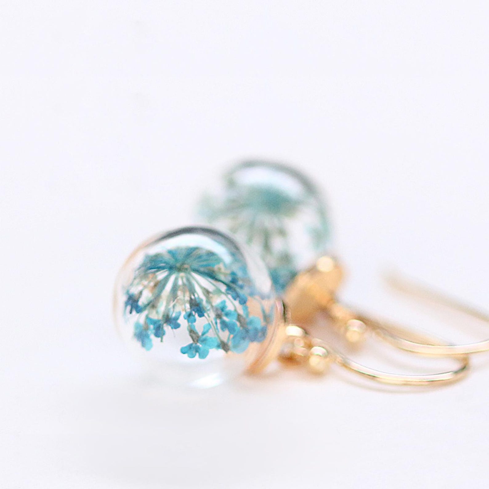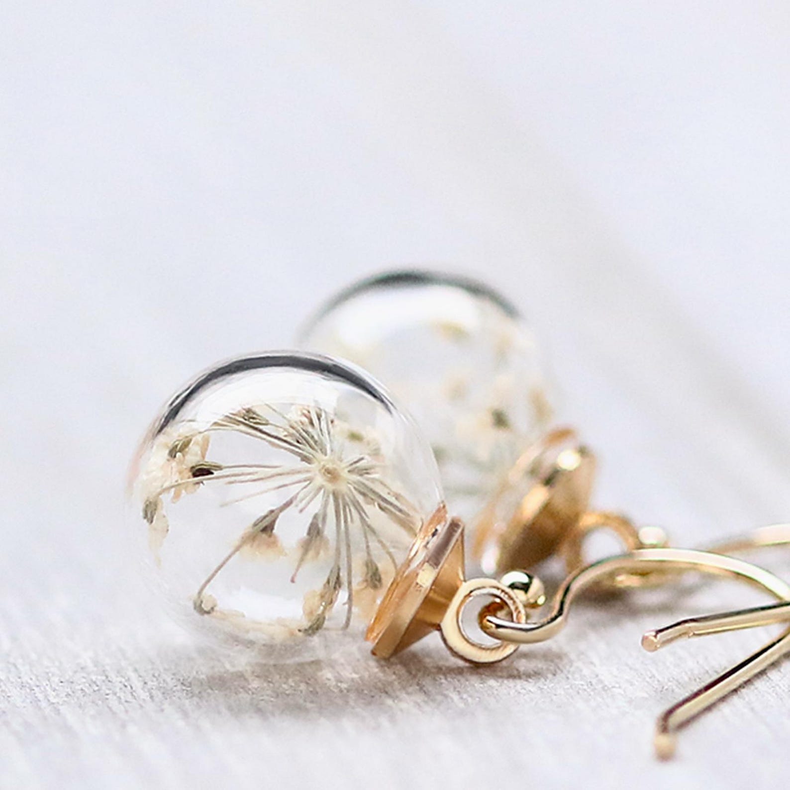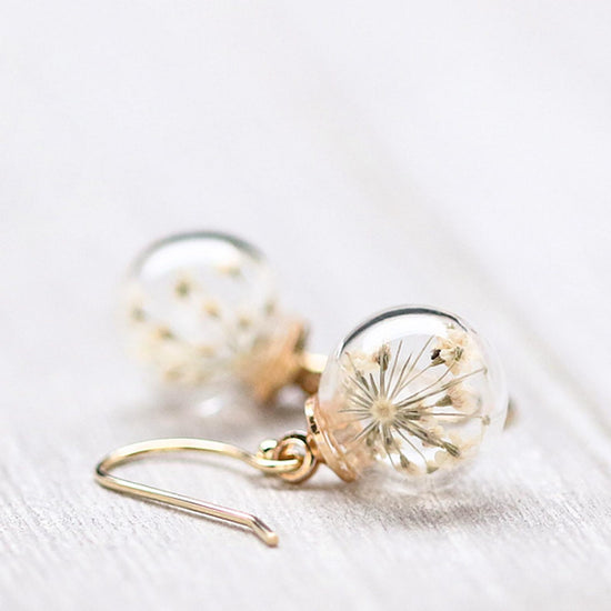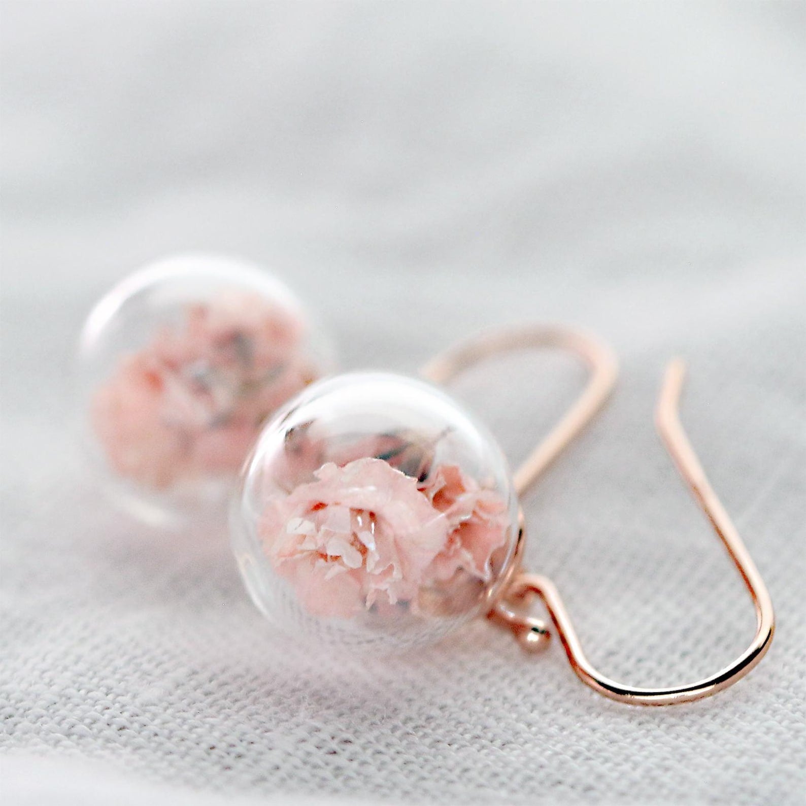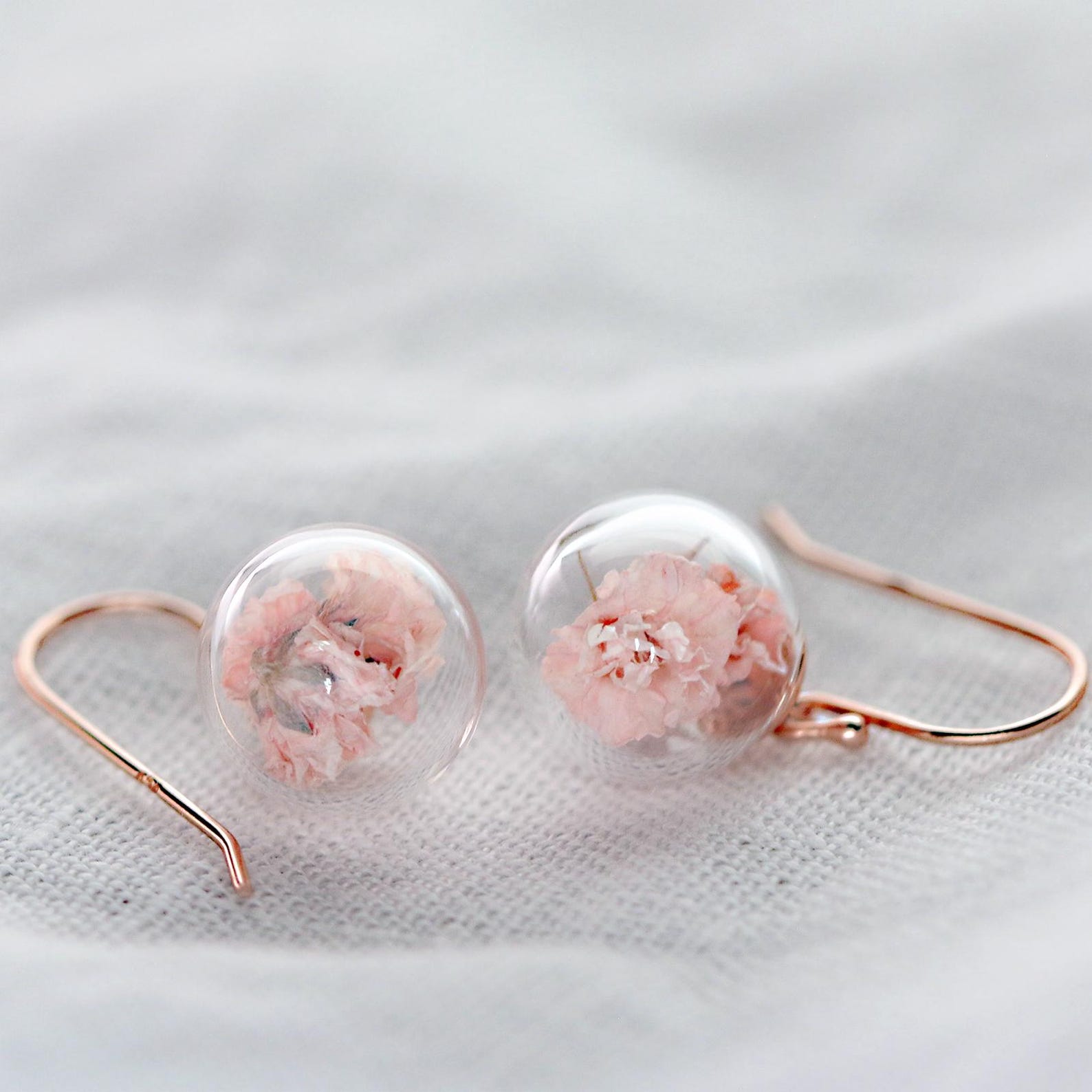 Ръчно изработени обеци с истински сушени цветя в стъклени топчета. Нежност, романтика и класа в едно бижу.
