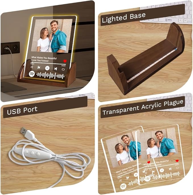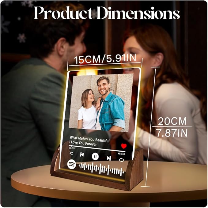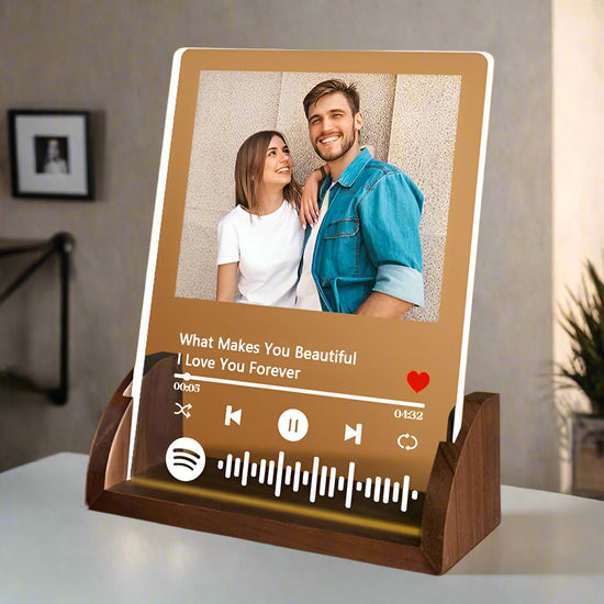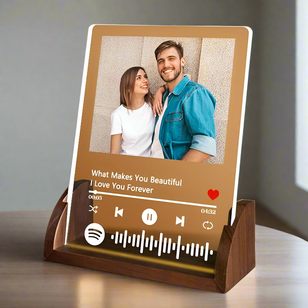 Create an unforgettable gift with our personalized Spotify lamp with a photo and your favorite song. Made from a solid 5mm acrylic sheet and a natural wooden stand with a built-in light , this lamp combines style, music, and memory.