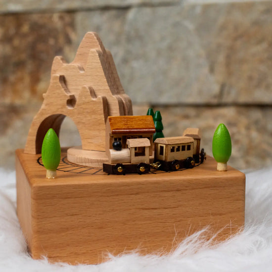 Наблюдавайте как влакчето потегля или балерината започва своя танц в съпровод на кристалния звук. Висококачественият механичен модул работи без батерии и кабели – само с ръчно навиване, което превръща играта в урок по фина моторика и естетика. Това е механика от старата школа, създадена да носи радост десетилетия наред.