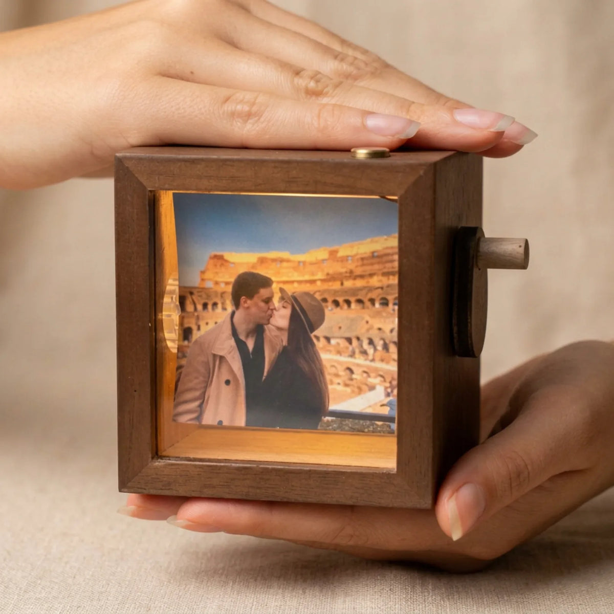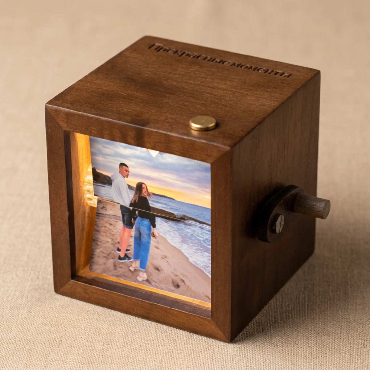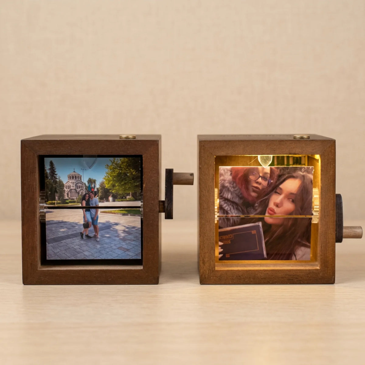 Всяка снимка се печата на специална фотохартия, изрязва се на ръка и се залепва с прецизност до милиметър. След това сглобяваме механизма и тестваме превъртането, докато не сме сигурни, че работи гладко като швейцарски часовник.