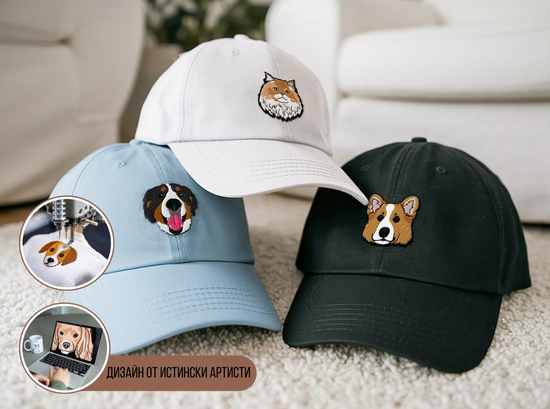 ПЕРСОНАЛИЗИРАНА ШАПКА С БРОДИРАНО ЛИЦЕ НА КУЧЕ ИЛИ КОТКА – УНИКАЛЕН ПОДАРЪК