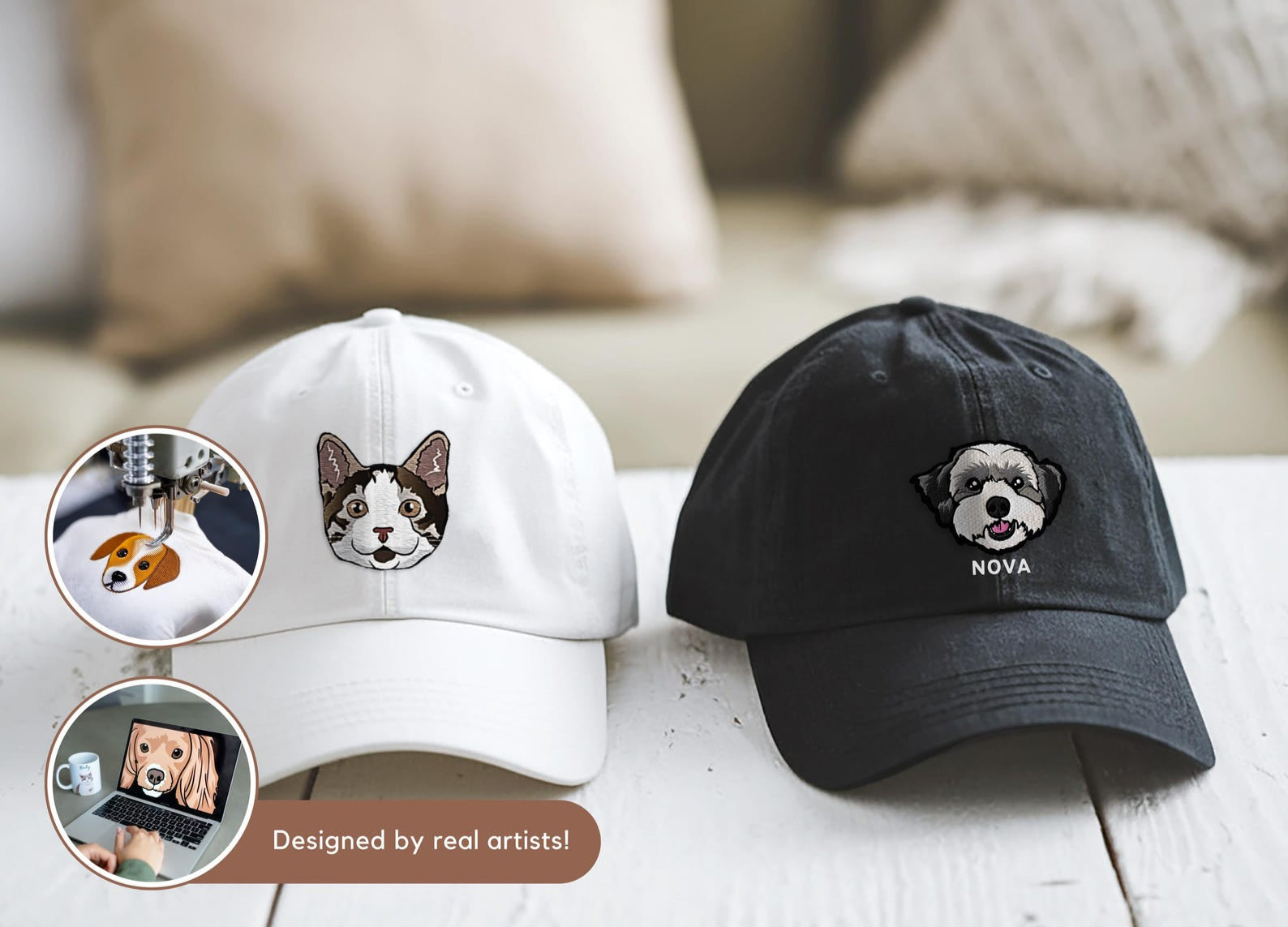 Изрази любовта си към своя любимец с тази персонализирана шапка с бродиран домашен любимец по снимка. Изработена с внимание към детайла, тази модерна и вечна шапка съчетава стил и сантимент, като превръща лицето на твоята котка или куче в част от твоя аутфит.