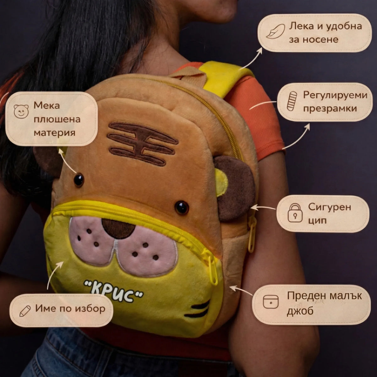 Първата раничка е голяма стъпка за всяко дете. Независимо дали ще изберете вълшебния Еднорог, пухкавия Заек, доброто Слонче, спокойната Коала или някой от веселите ни герои – Пчеличка, Жираф или Тигър, вашето съкровище ще има верен плюшен спътник до себе си. Тази раница не е просто вещ, а приятел, който носи увереност и усмивки по пътя към яслата, детската градина или парка.