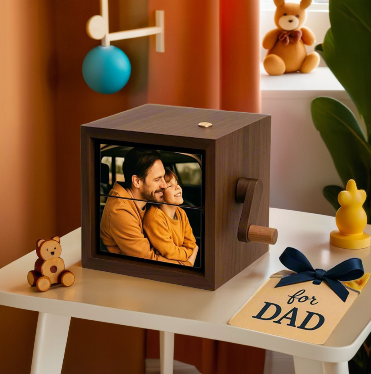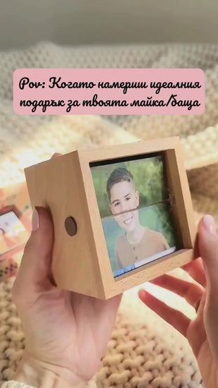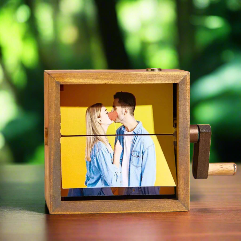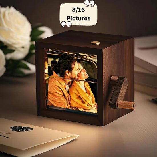 Оживи любимите си спомени с тази уникална персонализирана рамка тип флипбук – механично фотоалбумче, което създава анимиран ефект, когато завъртиш дръжката. Комбинирай избрани снимки с LED светлина, за да превърнеш кадрите в емоционален и магичен подарък.
