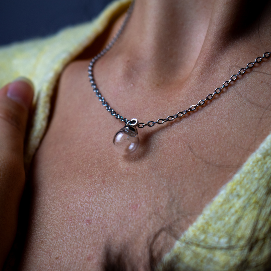 Колие „Направи Желание“ е точно такъв символ – съчетава истински изсушени глухарчета, поставени в ръчно издухано стъклено кълбо, и персонализирана плочка с Вашия текст.